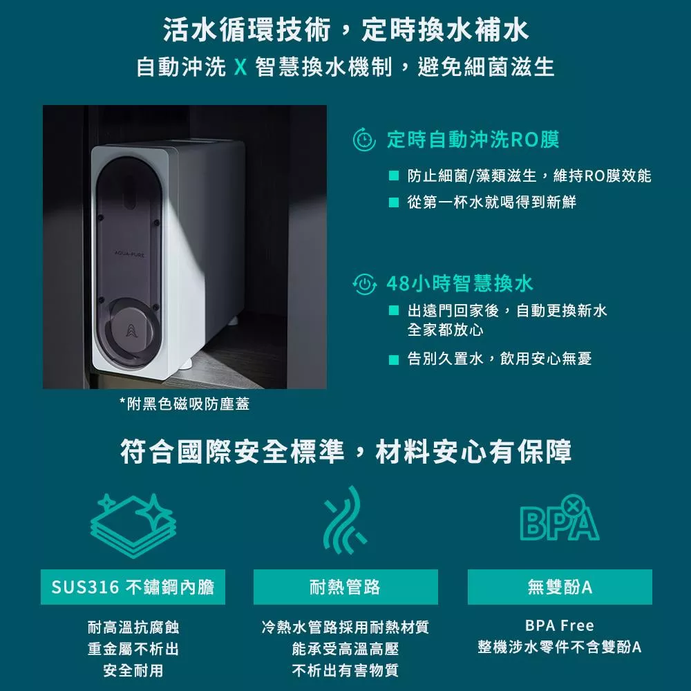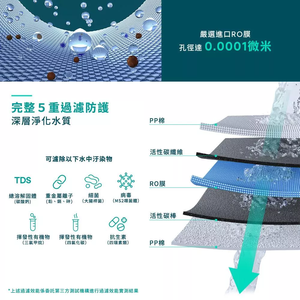 ◆ 五重濾材層層過濾,搭配600GPD RO膜,高效去除水中汙染物